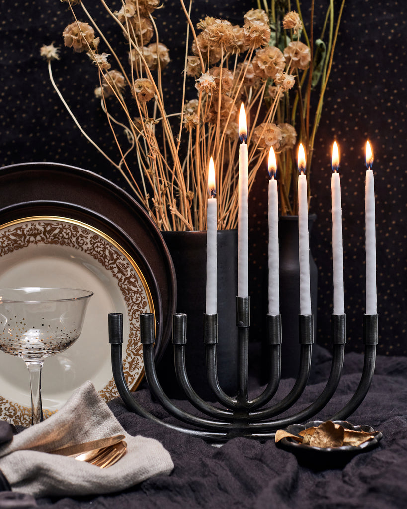 Note: Trim wicks to ¼". Placing lit candles near a draft or too close to each other may cause dripping. Always use a non-flammable menorah on a non- flammable surface. Secure candles in candleholder before lighting.