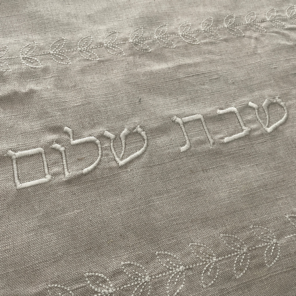 This modern challah cover makes the perfect addition to your Shabbat table. Crafted in Spain of 100% natural linen with coordinating embroidery and detailed with a delicate botanical design.