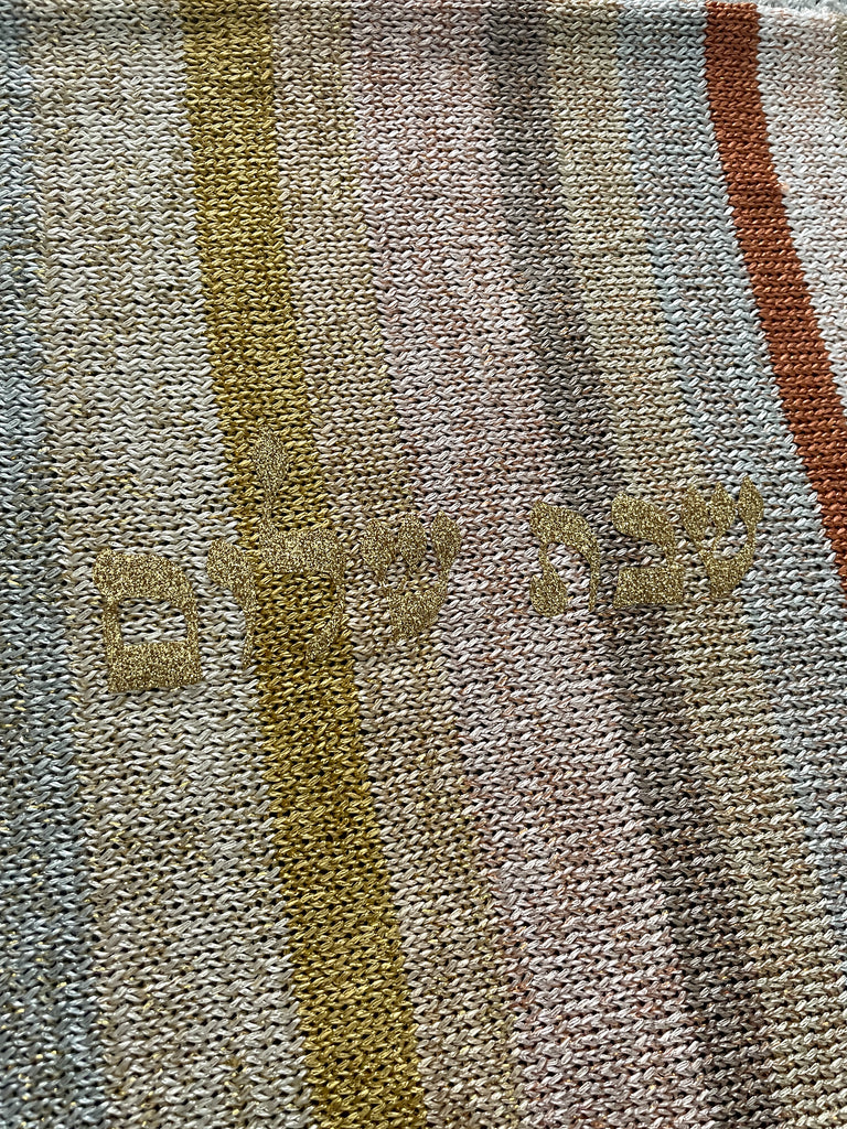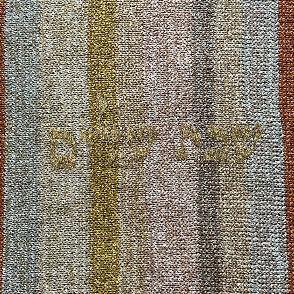 This exquisite, hand crafted challah cover makes the perfect addition to your Shabbat table. Hand woven in Argentina with multi color shades of cotton, metal and silk threads. Shabbat Shalom written shines bright written with glitter accents in Hebrew.