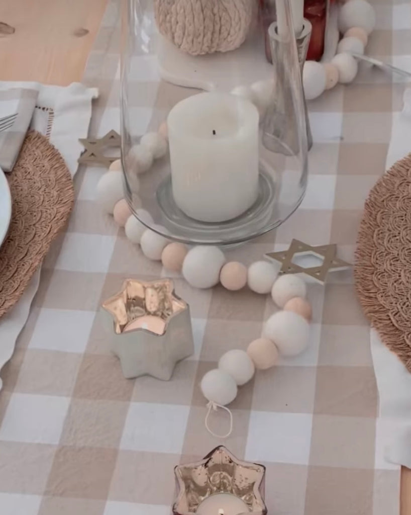 Perfect for any Jewish holiday, this star of David banner adds a festive touch to your celebration.  This handcrafted garland gives you two options instead of one. Each star is painted gold on one side and white on the other. We’ve added felt ball pompoms in two different sizes and wooden beads, to give you a beautiful wall, table, or mantle display.
