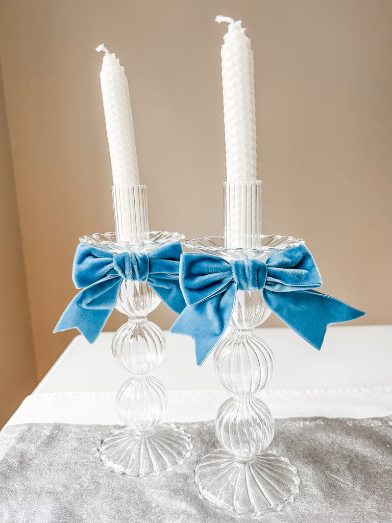 Illuminate your home with these beautiful clear glass candle holders. Combine beautiful vintage style with Jewish tradition. Ideal for shabbat dinners and festive gatherings, adding warmth and elegance to any space.