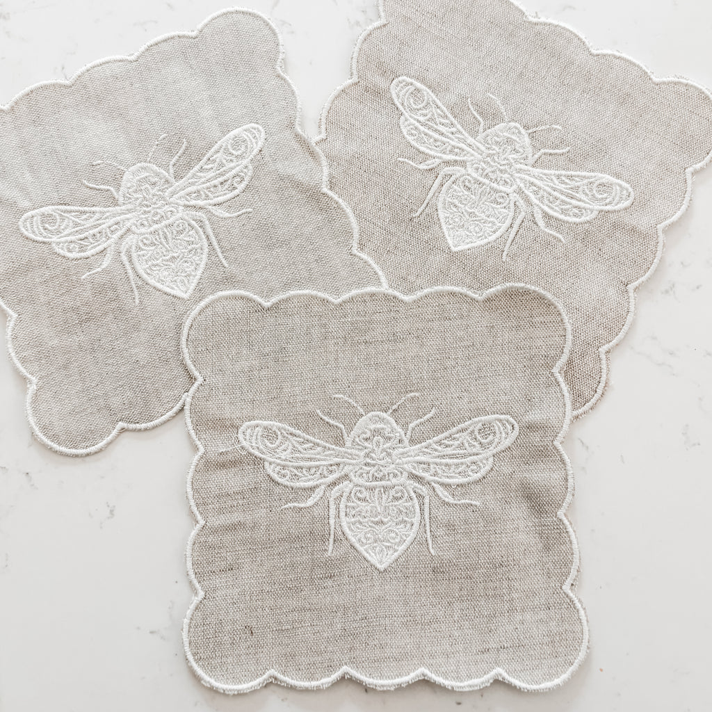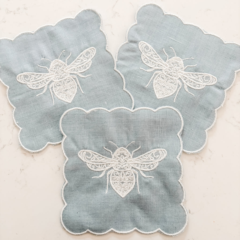 Buzz-Worthy Cocktail Napkins, Natural or Pale Blue, Set of Four, Rosh Hashanah