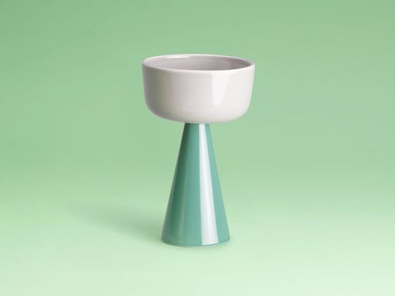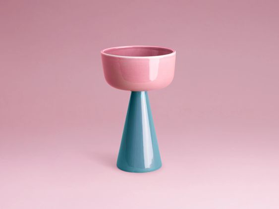 Perched atop a ceramic cone, the wine glass appears to balance precariously. The vibrant glaze adds an elevated aesthetic to any tablescape.  Designed by Tchotchke.