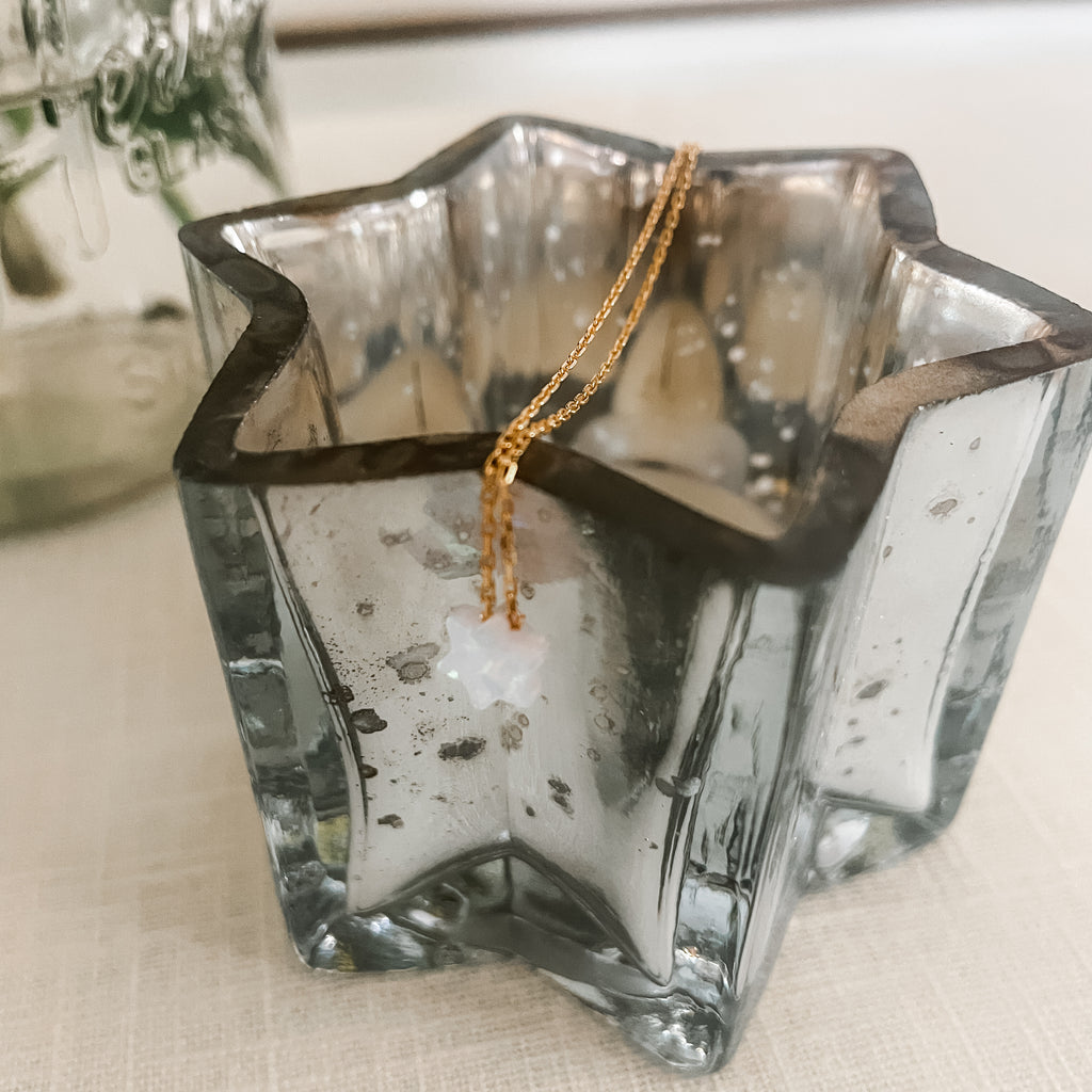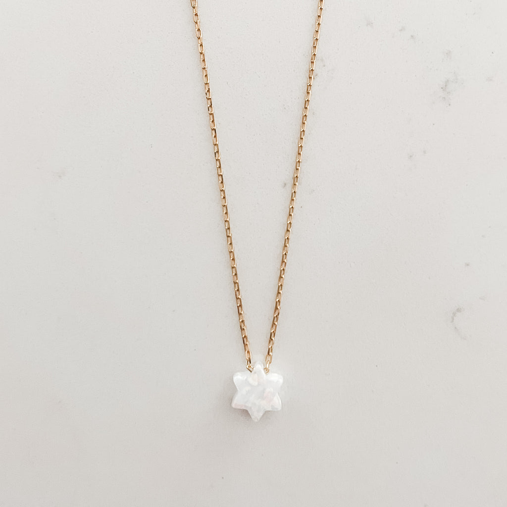 This dainty white opal Jewish star necklace has a beautiful, modern look. Available with gold or silver chain.