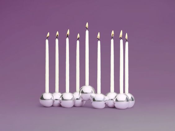 Stoneware bubbles handcrafted in Columbia merge geometry with the warm hand of ceramic, floating your candles on a cloud of bubbles.  Fits standard Hanukkah candles.  Also available in white ceramic.  Designed by Tchotchke.